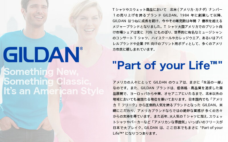 Tシャツ大国アメリカでのプリント向け市場シェアは実に70%にものぼり、 世界的に有名なミュージシャンのコンサートTシャツ、ハイスクールやカレッジウエア、 あるいはアパレルブランドや企業PR向けのプリント用ボディとして、多くのアメリカ市民に親しまれています。
