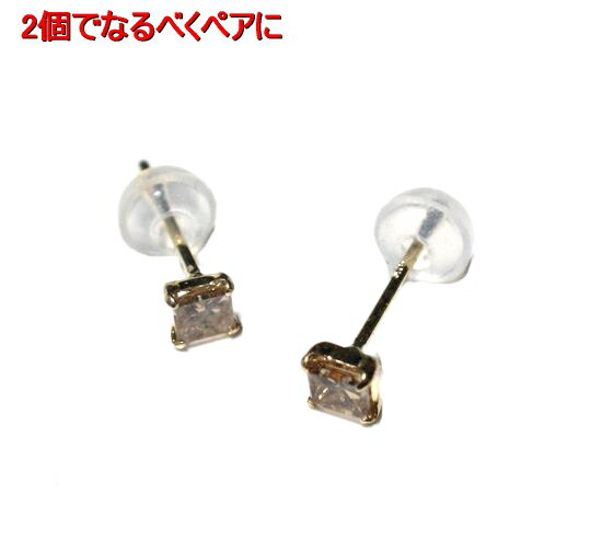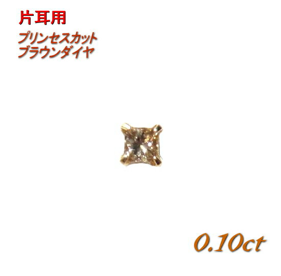 【限定】【片耳用】NewスクエアのプリンセスカットK18YG0.10ctブラウンダイヤモンドスタッドピアス【メール便送料無料】【半ペア】