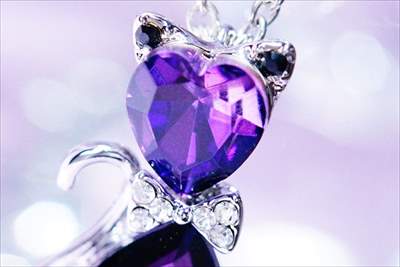 蝶ネクタイ(リボン)&ブラックストーン猫耳装飾キャット(ネコ)モチーフ ハートシェイプカット&ティアドロップカットキュービックジルコニアボディー レディース ペンダント ネックレス【パープルカラー】【あずきチェーン付き】